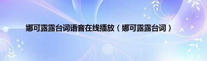 大家好,综合小编来为大家讲解下娜可露露台词语音在线播放,娜可露露台词这个很多人还不知道,现在让我们一起来看看吧!