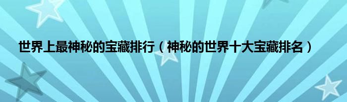 世界上最神秘的宝藏排行(神秘的世界十大宝藏排名)
