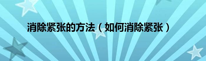 消除紧张的方法(如何消除紧张)