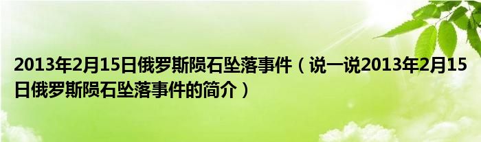 夏弥来为大家解答以下的问题,2013年2月15日俄罗斯陨石坠落事件,说一说2013年2月15日俄罗斯陨石坠落事件的简介,现在让我们一起来看看吧!