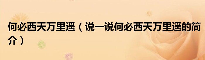 何必西天万里遥(说一说何必西天万里遥的简介)