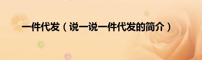 一件代发(说一说一件代发的简介)