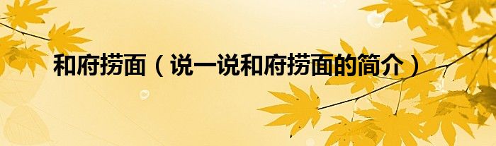 夏弥来为大家解答以下的问题,和府捞面,说一说和府捞面的简介,现在让我们一起来看看吧!
