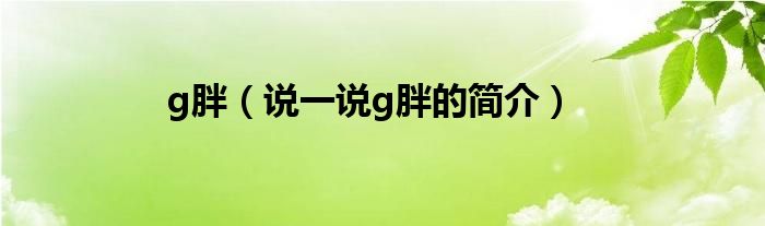 夏弥来为大家解答以下的问题,g胖,说一说g胖的简介,现在让我们一起来看看吧!