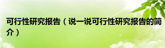 夏弥来为大家解答以下的问题,可行性研究报告,说一说可行性研究报告的简介,现在让我们一起来看看吧!