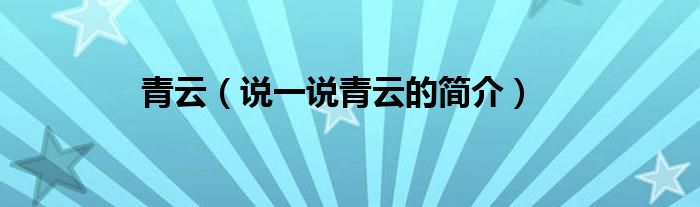 青云(说一说青云的简介)