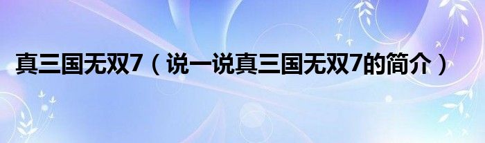 夏弥来为大家解答以下的问题,真三国无双7,说一说真三国无双7的简介,现在让我们一起来看看吧!