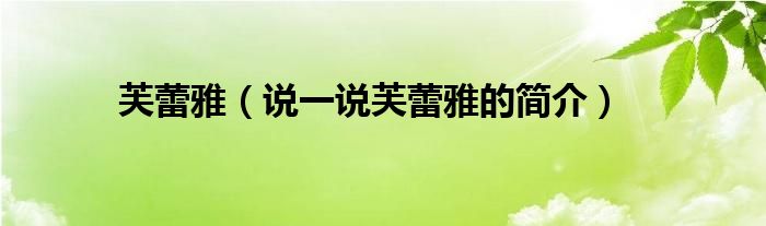 芙蕾雅(说一说芙蕾雅的简介)