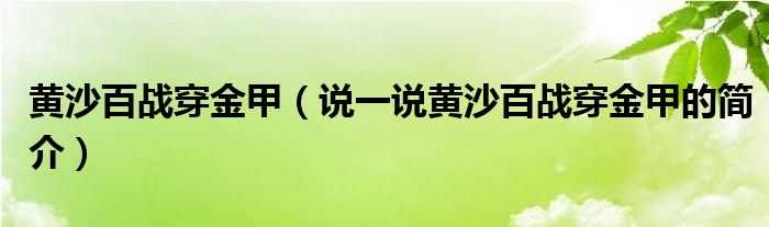 黄沙百战穿金甲(说一说黄沙百战穿金甲的简介)