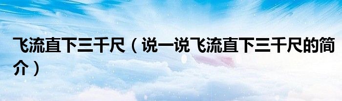 飞流直下三千尺(说一说飞流直下三千尺的简介)