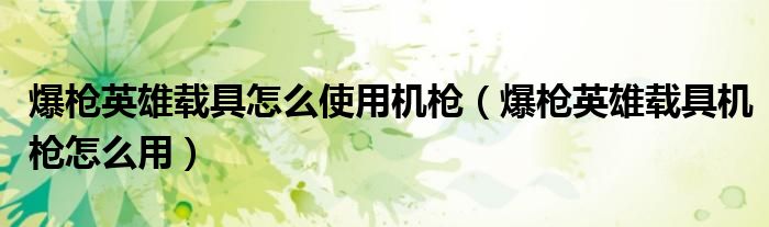 爆枪英雄载具怎么使用机枪(爆枪英雄载具机枪怎么用)