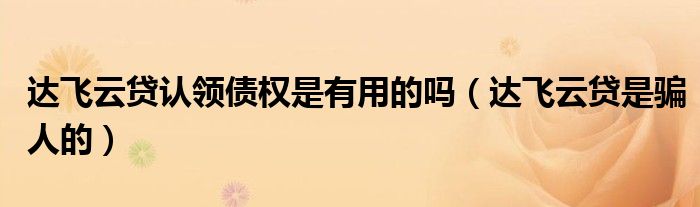 关于达飞云贷认领债权是有用的吗,达飞云贷是骗人的这个很多人还不知道,今天菲菲来为大家解答以上的问题,现在让我们一起来看看吧!