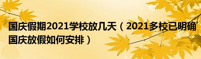 大家好,乐儿来为大家解答以下问题,国庆假期2021学校放几天,2021多校已明确国庆放假如何安排很多人还不知道,现在让我们一起来看看吧!