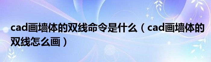 cad画墙体的双线命令是什么(cad画墙体的双线怎么画)
