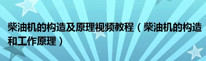 柴油机的构造及原理视频教程(柴油机的构造和工作原理)