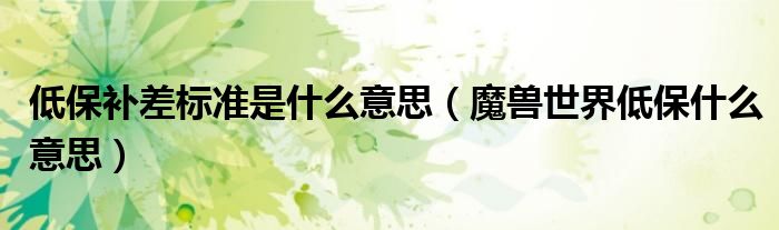 关于低保补差标准是什么意思,魔兽世界低保什么意思这个很多人还不知道,今天菲菲来为大家解答以上的问题,现在让我们一起来看看吧!