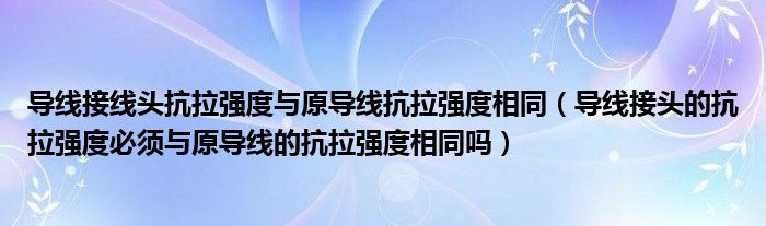 关于导线接线头抗拉强度与原导线抗拉强度相同,导线接头的抗拉强度必须与原导线的抗拉强度相同吗这个很多人还不知道,今天菲菲来为大家解答以上的问题,现在让我们一起来看看吧!