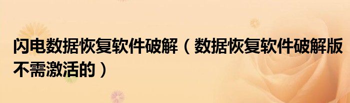 闪电数据恢复软件破解(数据恢复软件破解版不需激活的)