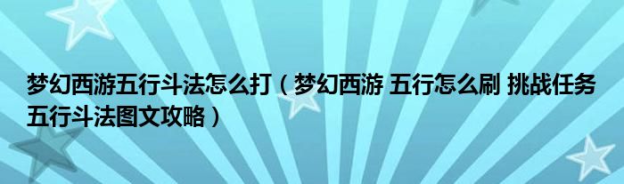 梦幻西游五行斗法怎么打(梦幻西游 五行怎么刷 挑战任务五行斗法图文攻略)