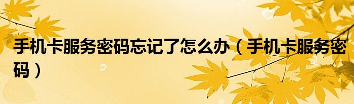 手机卡服务密码忘记了怎么办(手机卡服务密码)