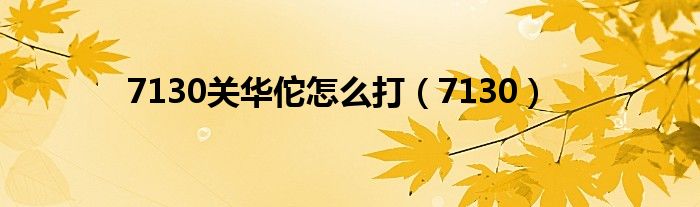 大家好,我是小科,我来为大家解答以上问题。7130关华佗怎么打,7130很多人还不知道,现在让我们一起来看看吧!