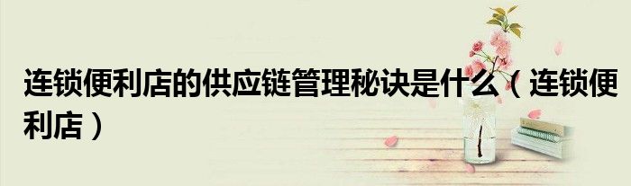 大家好,我是小科,我来为大家解答以上问题。连锁便利店的供应链管理秘诀是什么,连锁便利店很多人还不知道,现在让我们一起来看看吧!