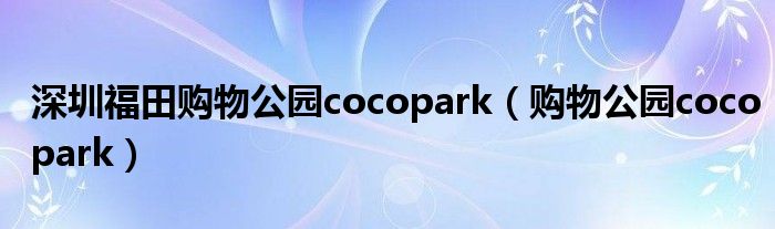 深圳福田购物公园cocopark(购物公园cocopark)