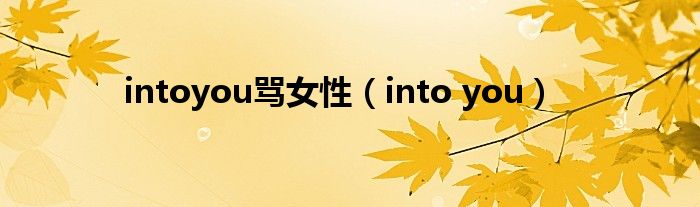 最佳答案大家好,我是小科,我来为大家解答以上问题。intoyou骂女性,into you很多人还不知道,现在让我们一起来看看吧!1、into you 应译为:针对你。2、你最好把整个句子给我,我帮你翻译啊本文到此讲解完毕了,希望对大家有帮助。