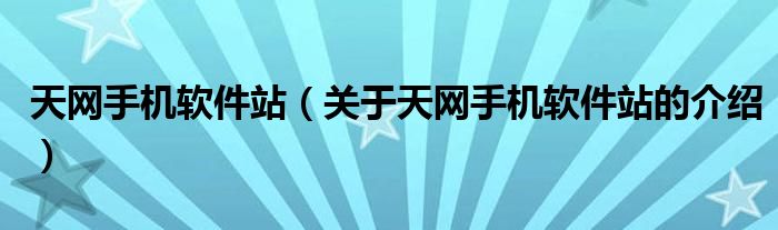 天网手机软件站(关于天网手机软件站的介绍)
