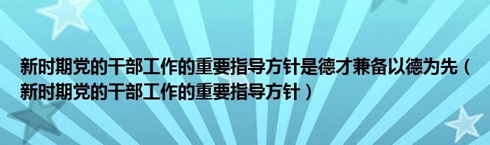 新时期党的干部工作的重要指导方针是德才兼备以德为先(新时期党的干部工作的重要指导...