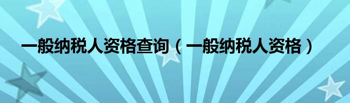 一般纳税人资格查询(一般纳税人资格)