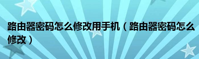 路由器密码怎么修改用手机(路由器密码怎么修改)