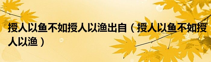 关于授人以鱼不如授人以渔出自,授人以鱼不如授人以渔这个很多人还不知道,今天菲菲来为大家解答以上的问题,现在让我们一起来看看吧!
