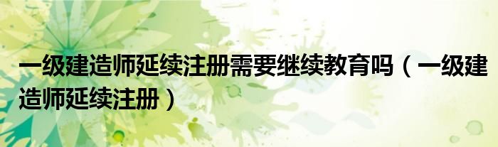 关于一级建造师延续注册需要继续教育吗,一级建造师延续注册这个很多人还不知道,今天菲菲来为大家解答以上的问题,现在让我们一起来看看吧!