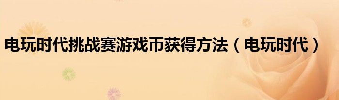 大家好,来宝来为大家解答以下问题,电玩时代挑战赛游戏币获得方法,电玩时代很多人还不知道,今天让我们一起来看看吧!
