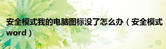 大家好,来宝来为大家解答以下问题,安全模式我的电脑图标没了怎么办,安全模式word很多人还不知道,今天让我们一起来看看吧!