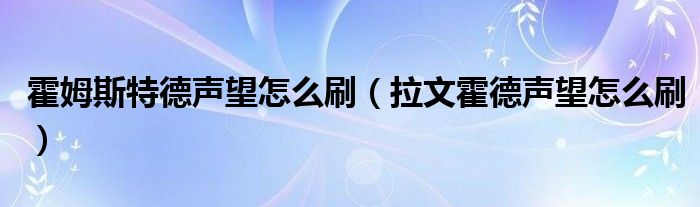霍姆斯特德声望怎么刷(拉文霍德声望怎么刷)