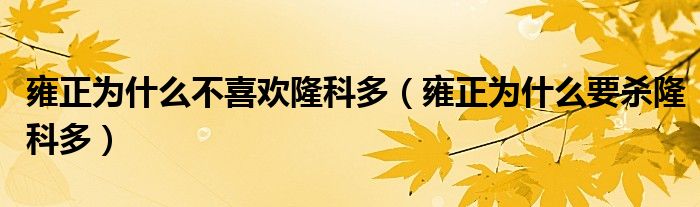 关于雍正为什么不喜欢隆科多,雍正为什么要杀隆科多这个很多人还不知道,今天菲菲来为大家解答以上的问题,现在让我们一起来看看吧!