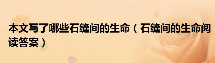关于本文写了哪些石缝间的生命,石缝间的生命阅读答案这个很多人还不知道,今天菲菲来为大家解答以上的问题,现在让我们一起来看看吧!