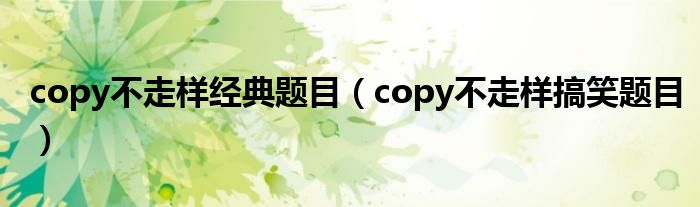 关于copy不走样经典题目,copy不走样搞笑题目这个很多人还不知道,今天菲菲来为大家解答以上的问题,现在让我们一起来看看吧!