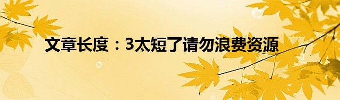 关于文章长度:3太短了请勿浪费资源这个很多人还不知道,今天菲菲来为大家解答以上的问题,现在让我们一起来看看吧!