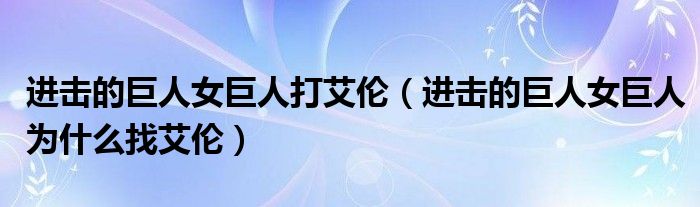 进击的巨人女巨人打艾伦,进击的巨人女巨人为什么找艾伦这个很多人还不知道,小飞来为大家解答以上的问题。现在让我们一起来看看吧!