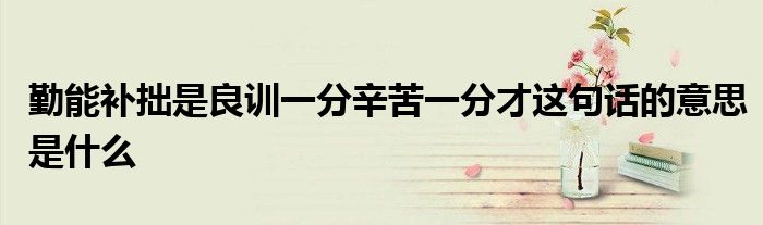 关于勤能补拙是良训一分辛苦一分才这句话的意思是什么这个很多人还不知道,今天菲菲来为大家解答以上的问题,现在让我们一起来看看吧!