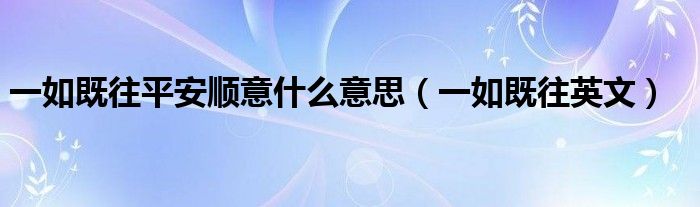 大家好,小飞来为大家解答以上的问题。一如既往平安顺意什么意思,一如既往英文这个很多人还不知道,现在让我们一起来看看吧!