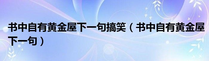 书中自有黄金屋下一句搞笑(书中自有黄金屋下一句)