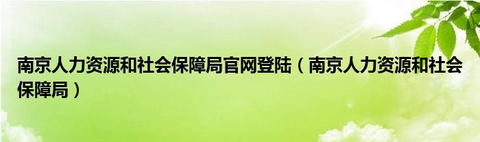 南京人力资源和社会保障局官网登陆(南京人力资源和社会保障局)