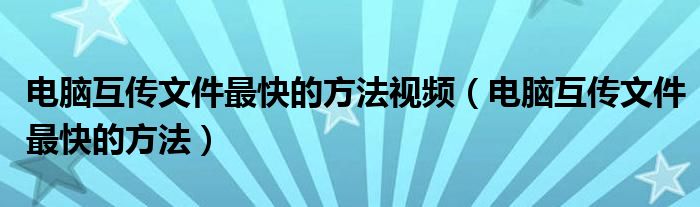 电脑互传文件最快的方法视频(电脑互传文件最快的方法)