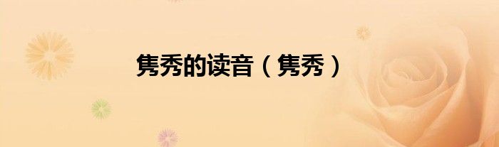 关于隽秀的读音,隽秀这个很多人还不知道,今天菲菲来为大家解答以上的问题,现在让我们一起来看看吧!