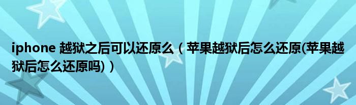 iphone 越狱之后可以还原么(苹果越狱后怎么还原(苹果越狱后怎么还原吗))