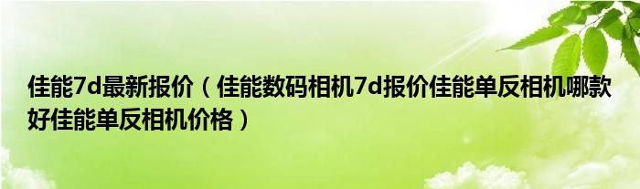 6,佳能7D的最新报价是多少还会再降吗:佳能7D的最新报价为nbsp;10800元,nbsp;较上两周已降nbsp;400元;佳能7Dnbsp;是今秋佳能发布的份量最重的一款产品,nbsp;最高8张/秒的连拍性能,nbsp;可以满足苛刻的运动拍摄要求,nbsp;是目前的APS-C画幅之王,nbsp;国庆前价格为11600元.目前经过两次的降价,nbsp;估计短期内价格会保持稳定....
